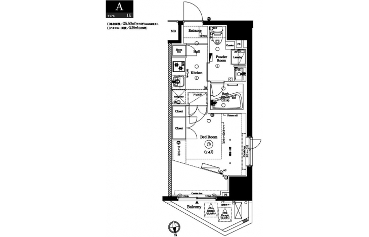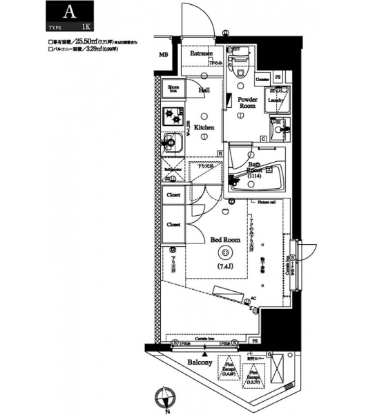 | 専有面積 | 25.50m² | バルコニー面積 | 3.29m² |