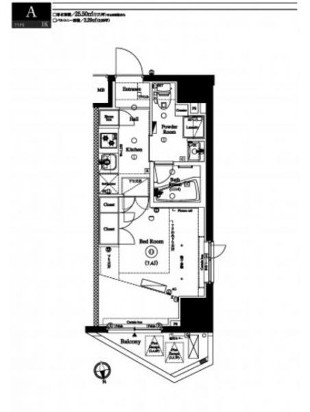 | 専有面積 | 25.50m² | バルコニー面積 | |