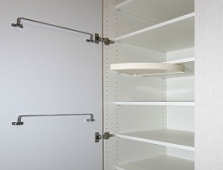 お部屋のイメージを左右する玄関の整理整頓の要となるシューズボックスはブーツなどの背の高い履物にも対応する高さ調整機能付の棚板を使用しています。