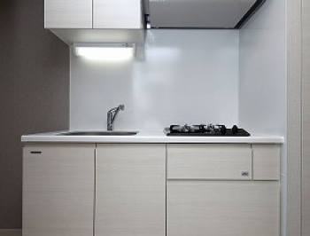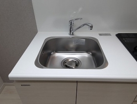 汚れにくくお手入れも簡単なステンレスシンクを設置。コンパクトなキッチンをより便利で使いやすくしてくれる人造大理石プレート付きです。