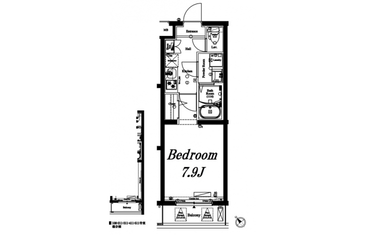 | 専有面積 | 25.62m² | バルコニー面積 | 3.30m² |
