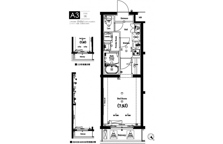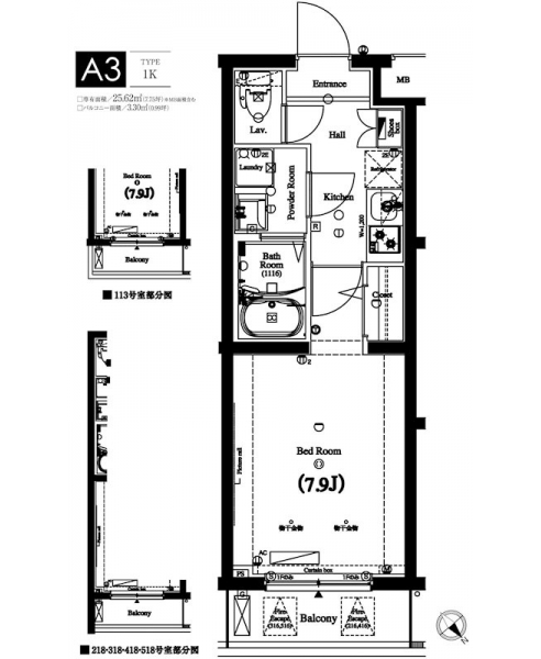 | 専有面積 | 25.62m² | バルコニー面積 | 3.30m² |