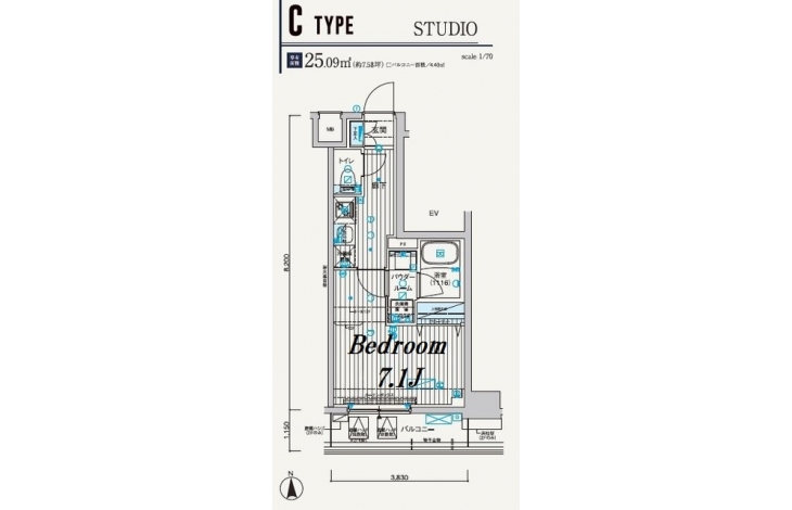 | 専有面積 | 25.09m² | バルコニー面積 | |