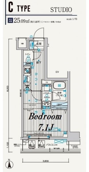 | 専有面積 | 25.09m² | バルコニー面積 | |