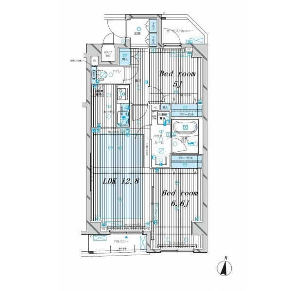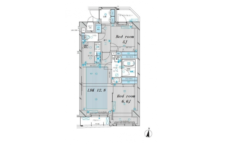 洋室 6.6 畳 洋室 5 畳 LDK 12.8 畳 |