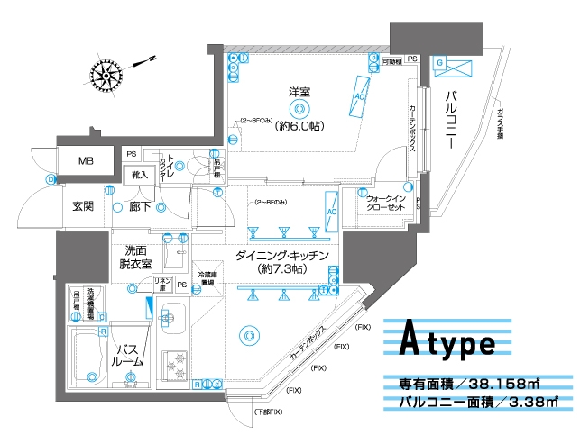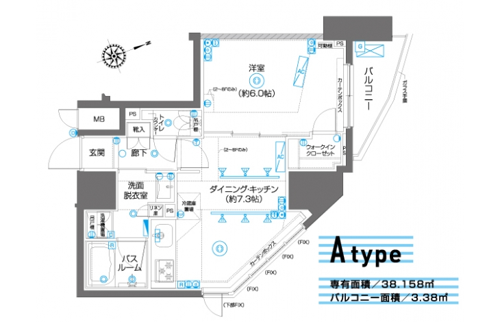 | 専有面積 | 38.15m² | バルコニー面積 | 3.38m² |