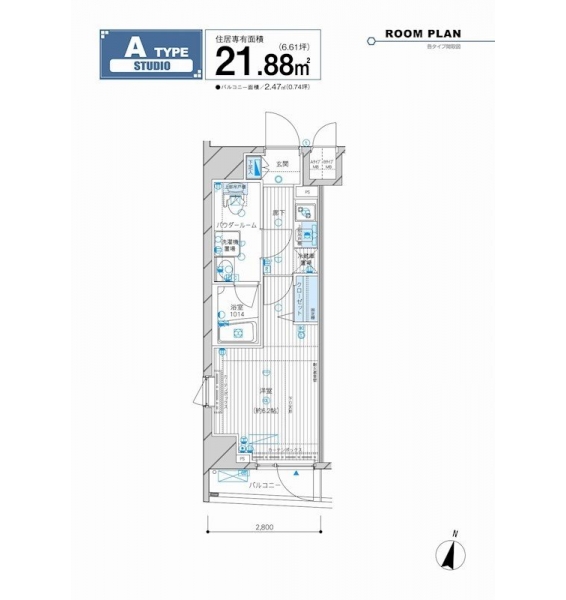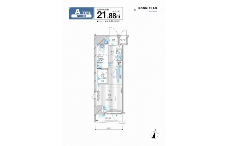 | 専有面積 | 21.88m² | バルコニー面積 | |