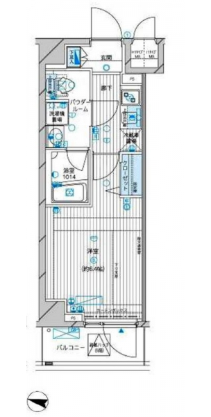 K 2 畳 洋室 6.4 畳 |