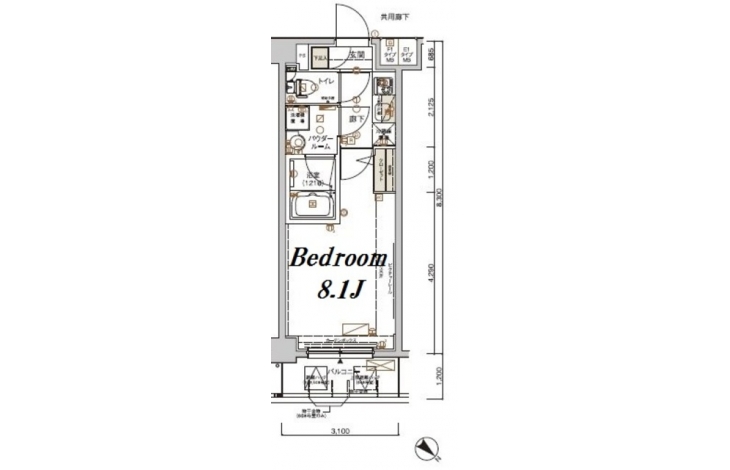 | 専有面積 | 25.73m² | バルコニー面積 | |