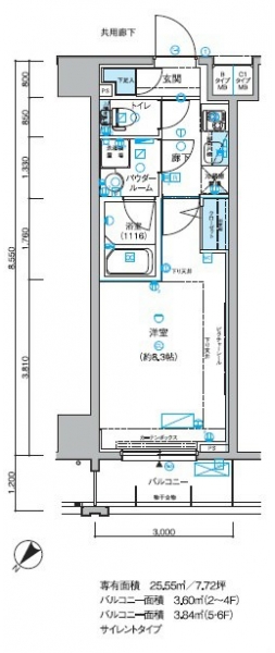 | 専有面積 | 25.55m² | バルコニー面積 | |