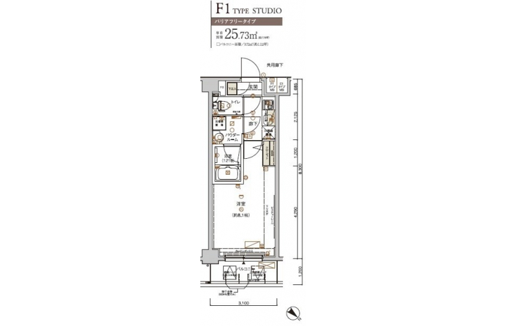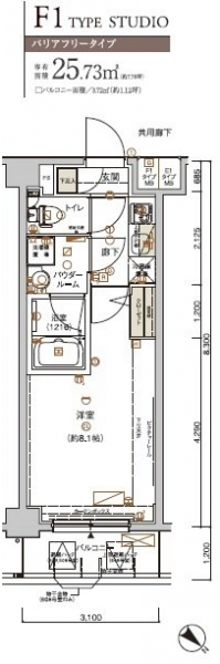 | 専有面積 | 25.73m² | バルコニー面積 | |