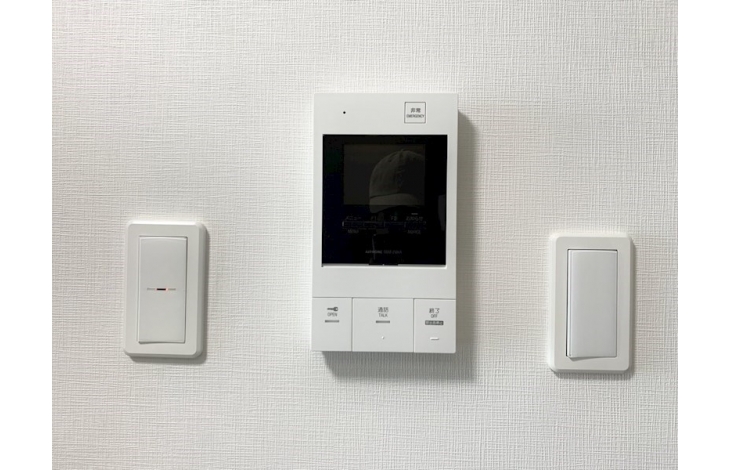 【オートロック盤】エントランスの集合玄関機のカメラにより訪問者を映像で確認出来ます。その他にも解錠表示機能等で居住者の安全と安心を確保します。