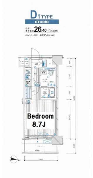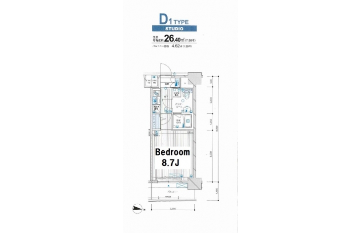| 専有面積 | 26.40m² | バルコニー面積 | |