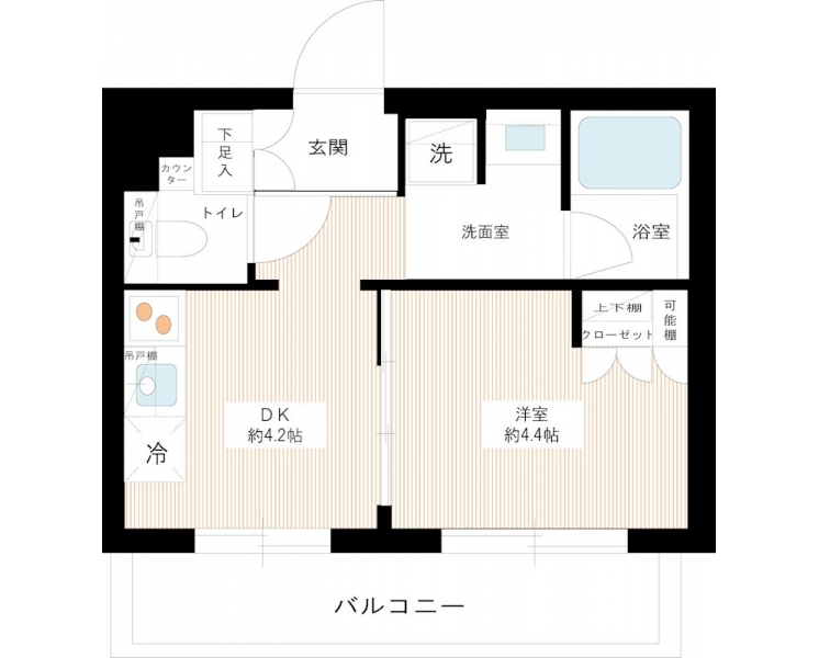 洋室 4.4 畳 4 階 DK 4.2 畳 4 階 |