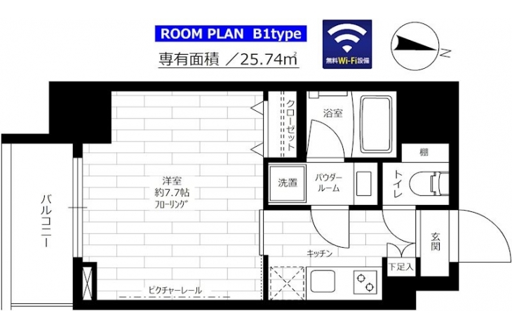 | 専有面積 | 25.74m² | バルコニー面積 | |