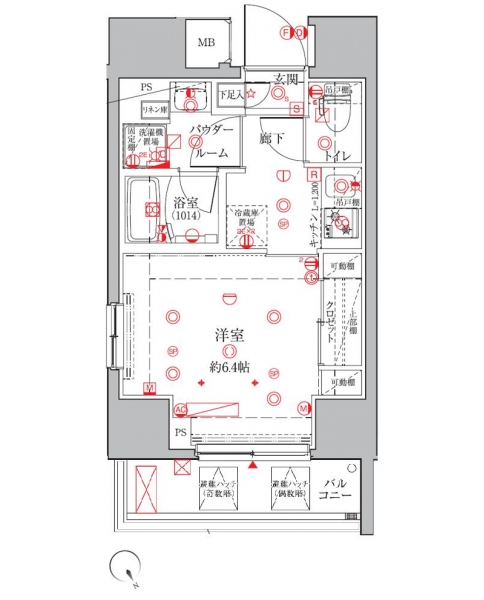 洋室 6.4 畳 K 2 畳 |