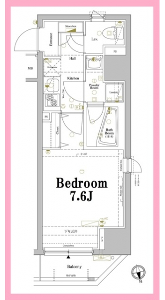 K 2 畳 洋室 7.6 畳 |