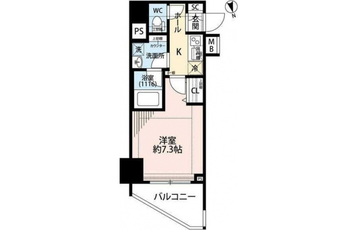 洋室 7.3 畳 K 2 畳 |