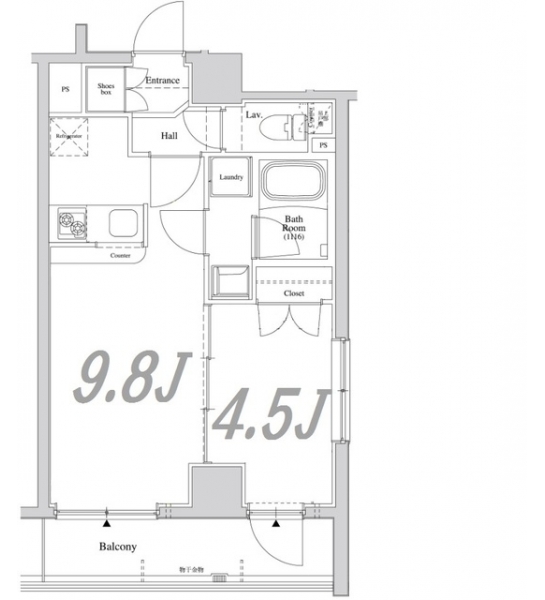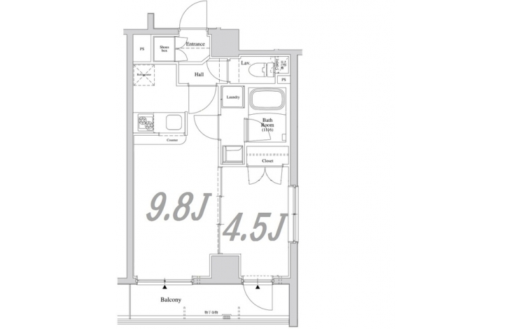 LDK 9.8 畳 洋室 4.5 畳 |