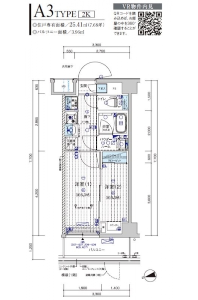 | 専有面積 | 25.41m² | バルコニー面積 | |