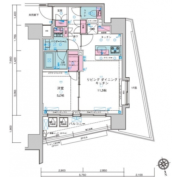 LDK 11.5 畳 5 階 洋室 5 畳 5 階 |