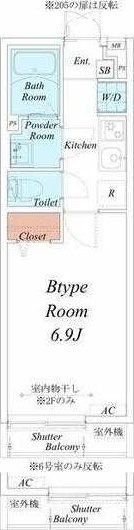 K 2.2 畳 1 階 洋室 6.9 畳 1 階 |