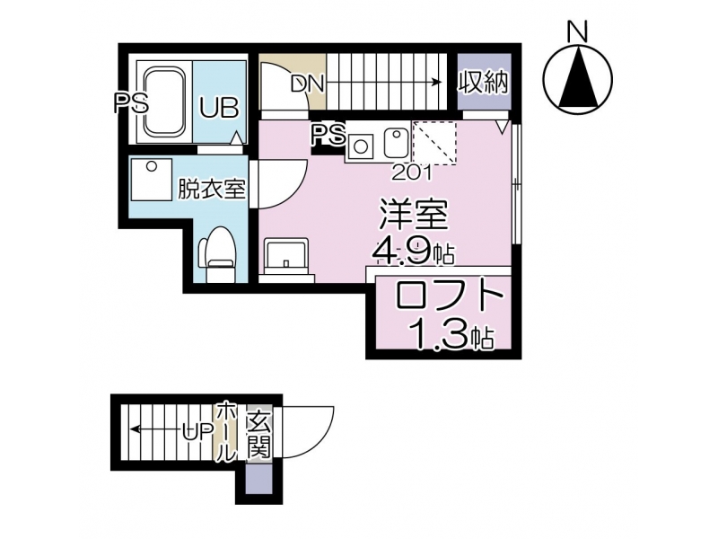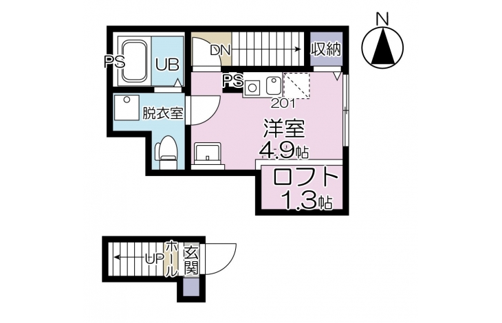 洋室 4.9 畳 2 階 その他 1.3 畳 2 階 |