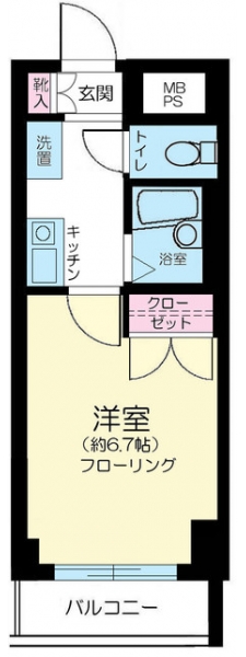 K 2 畳 洋室 6.7 畳 |