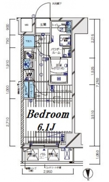K 2 畳 洋室 6.1 畳 |