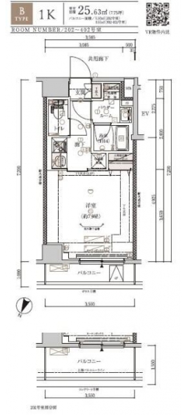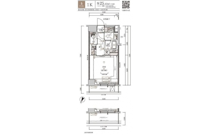 | 専有面積 | 25.63m² | バルコニー面積 | |