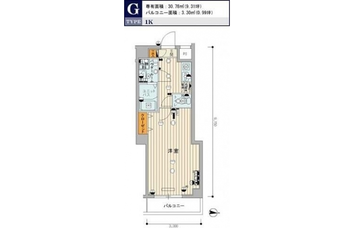 | 専有面積 | 30.78m² | バルコニー面積 | |