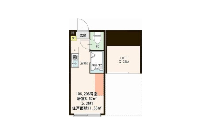 | 専有面積 | 11.66m² | バルコニー面積 | |
