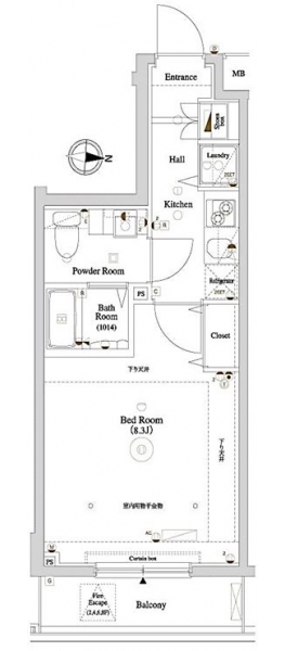 | 専有面積 | 25.60m² | バルコニー面積 | 3.85m² |