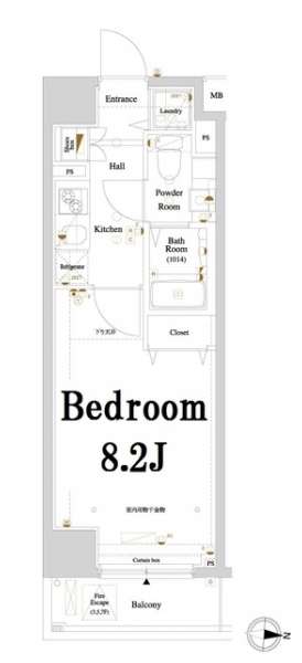 | 間取り | 1K | 階建 | ***/8階建 |