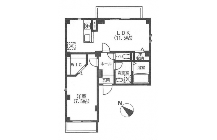 洋室 7.5 畳 LDK 11.5 畳 |