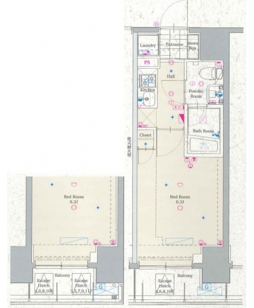 | 間取り | 1K | 階建 | ***/11階建 |