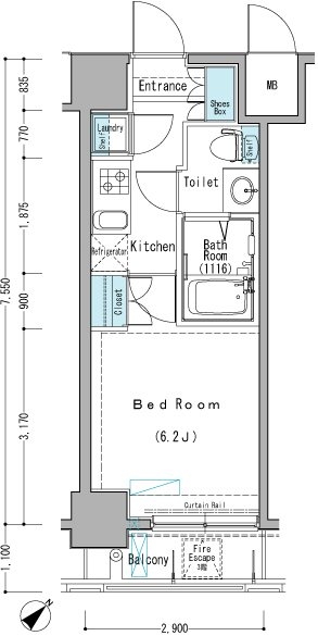 | 専有面積 | 22.02m² | バルコニー面積 | |