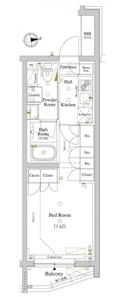 K 2 畳 洋室 7.4 畳 |