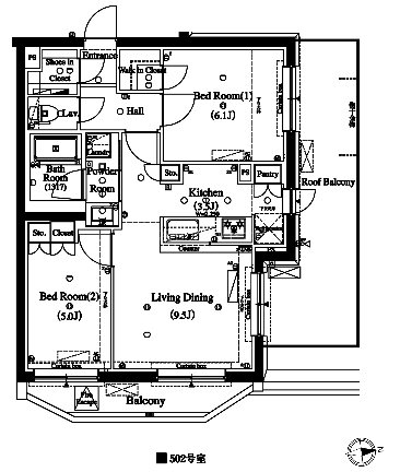 | 専有面積 | 55.02m² | バルコニー面積 | |