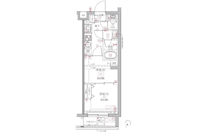 洋室 4 畳 洋室 4.3 畳 K 2 畳 |