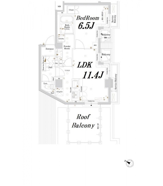 LDK 11.4 畳 洋室 6.5 畳 |