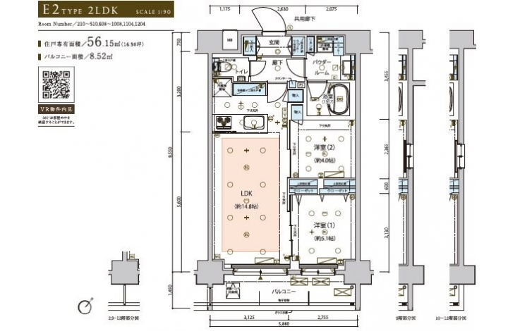 | 専有面積 | 56.15m² | バルコニー面積 | |