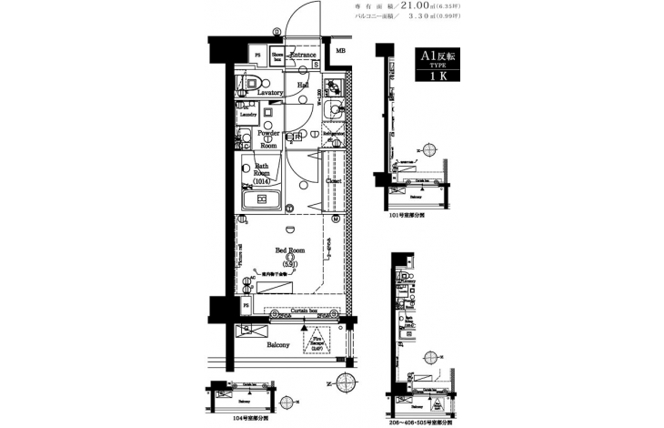| 専有面積 | 21.00m² | バルコニー面積 | 3.30m² |