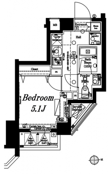 K 2 畳 洋室 5.1 畳 |