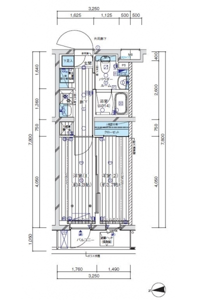 洋室 4.3 畳 洋室 3.7 畳 |
