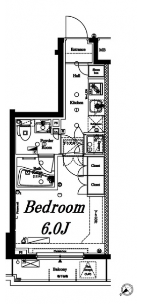 | 専有面積 | 23.05m² | バルコニー面積 | 3.50m² |