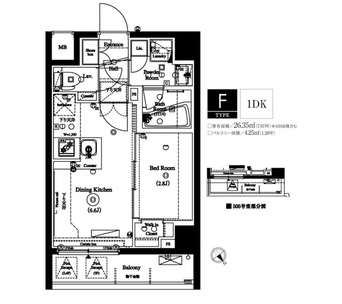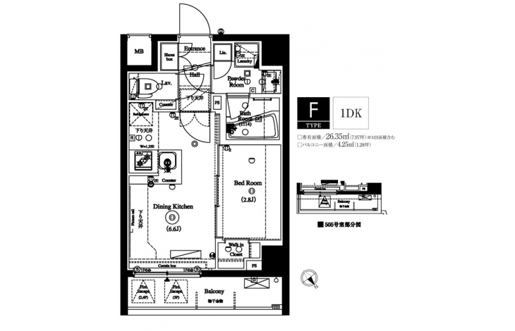 | 専有面積 | 26.35m² | バルコニー面積 | 4.25m² |
