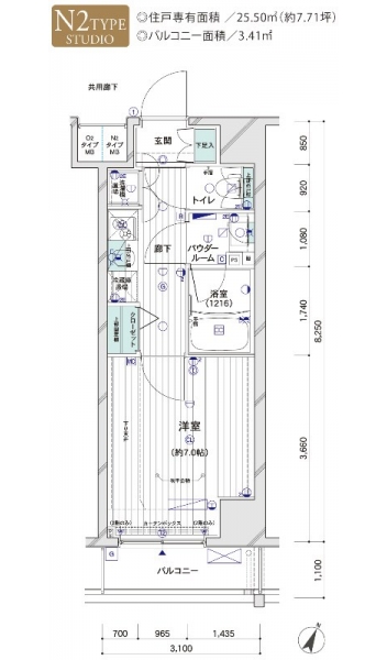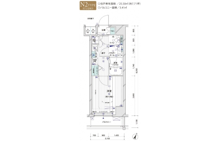 | 専有面積 | 25.50m² | バルコニー面積 | 3.41m² |