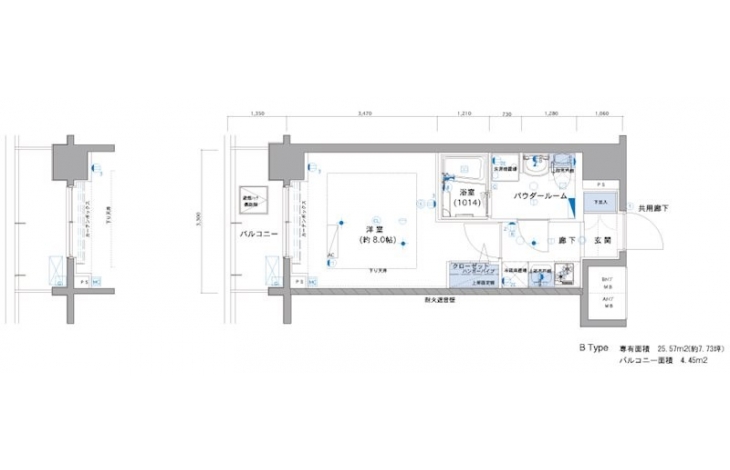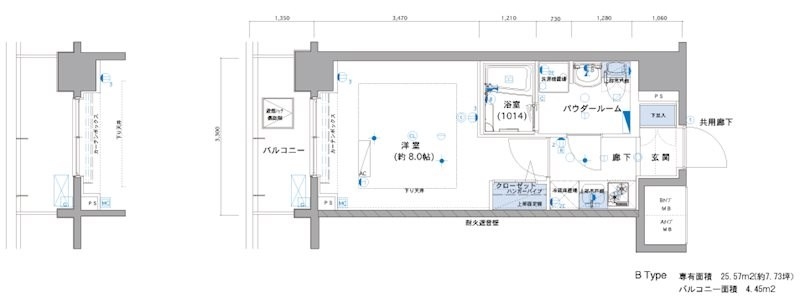 | 専有面積 | 25.57m² | バルコニー面積 | |
