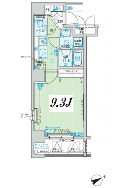 K 2 畳 洋室 9.3 畳 |